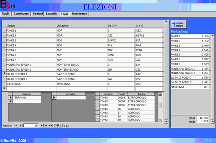 1) inserimento dei Seggi desiderati (nome, ubicazione e limiti per iniziali alfabetiche);